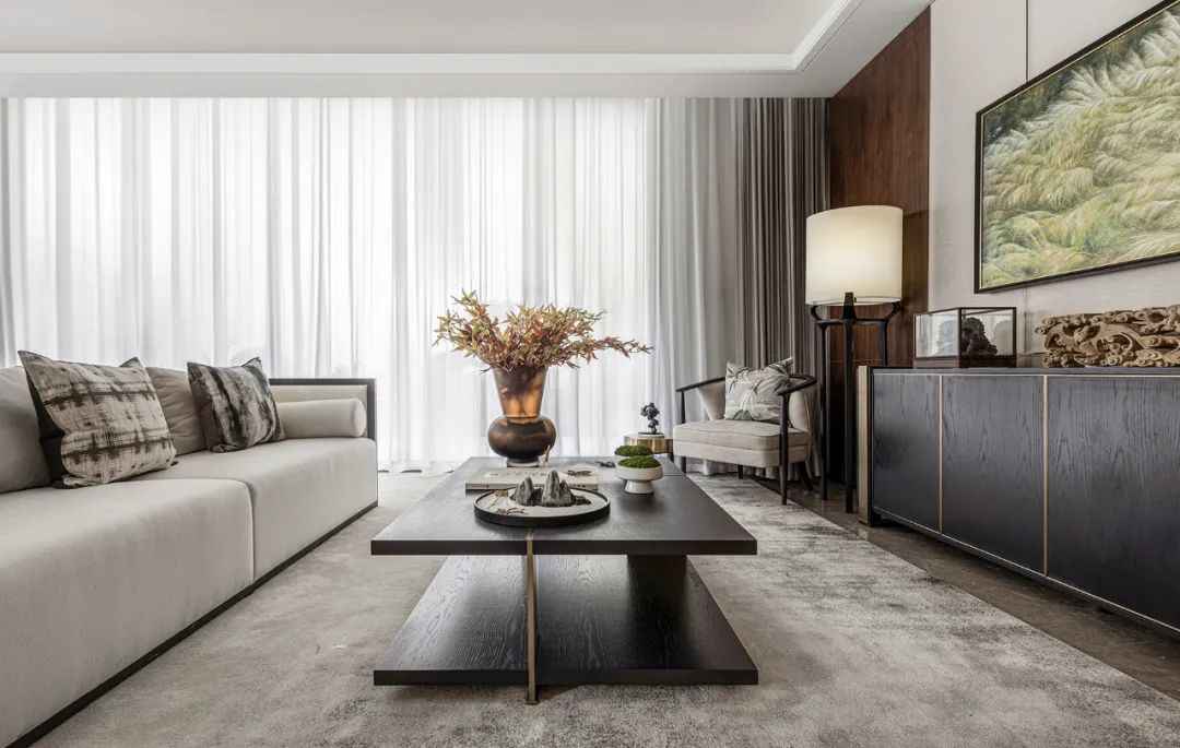 Black, white and gray interpretation of elegant temperament, through the texture and color of various materials to express the language of art, to achieve the natural performance of space and visual impact. In the furniture selection, light-toned fabric and leather are also used to add details. The metallic color scheme is distributed in the space to create a dusty elegance.