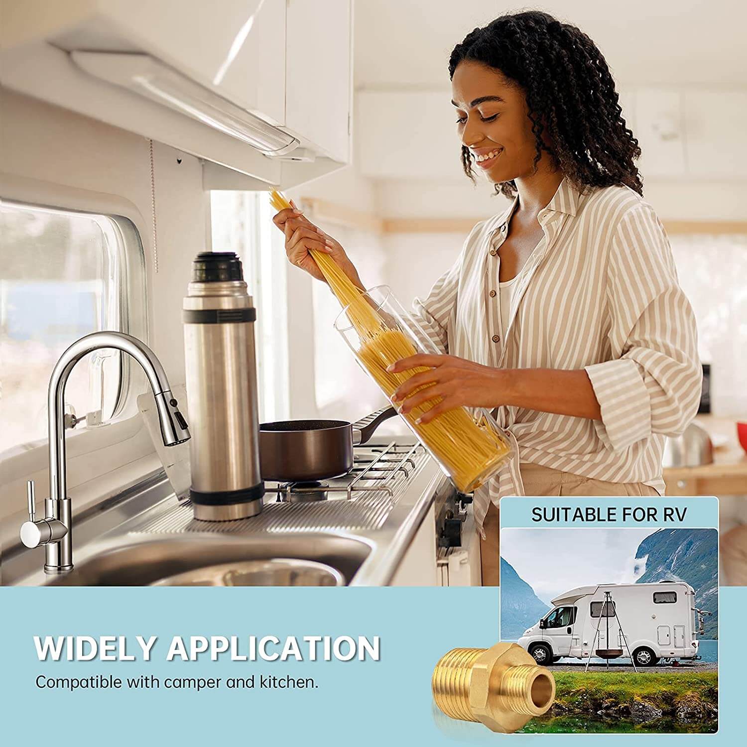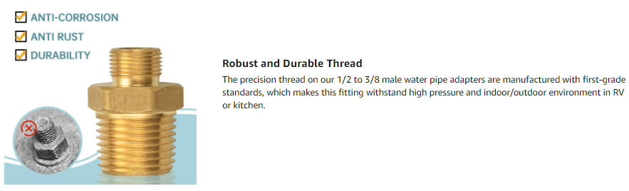 • WIDELY APPLICATION: The premium material enables this RV faucet adapter to connect and extend different size pipes or fittings, can be used with multiple fuels in low and medium pressure pipe line connections in kitchen as well as RV and other wet environments.