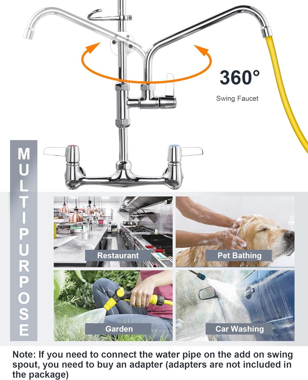 WOWOW 25″ Height Pre-Rinse Wall Mount Commercial Kitchen Faucet with Sprayer
