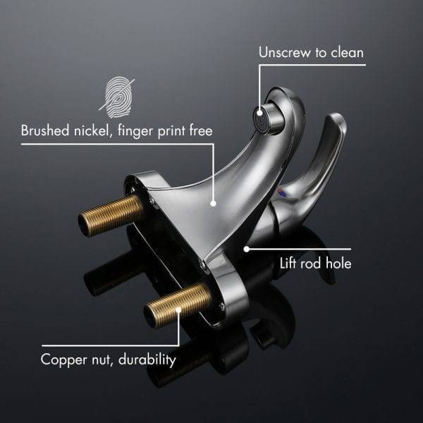 - SANITARY TO USE WITH DRAIN ASSEMBLY INCLUDED: The bathroom faucet brushed nickel come with metal drain assembly, water come out of faucet sink through pressing down the lift rod, avoiding mucking up your washed hands. Supply Lines Sold Separately