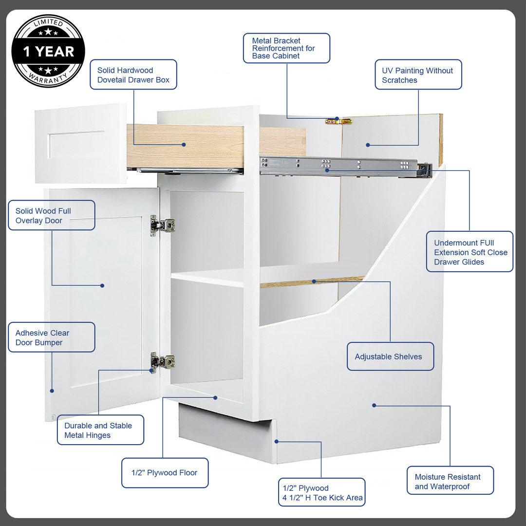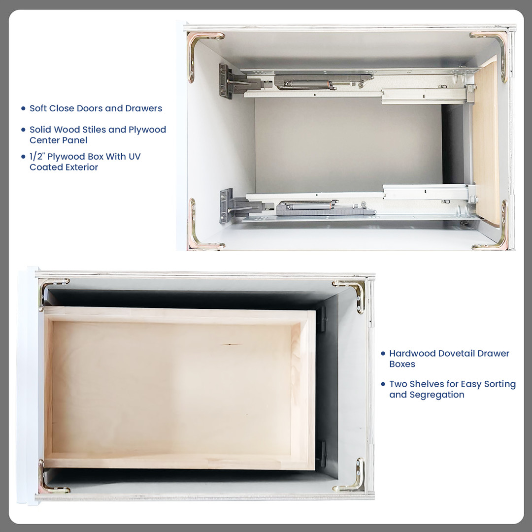 WOWOW Assembled Plywood Base Kitchen Cabinet in White Painted with Soft Close