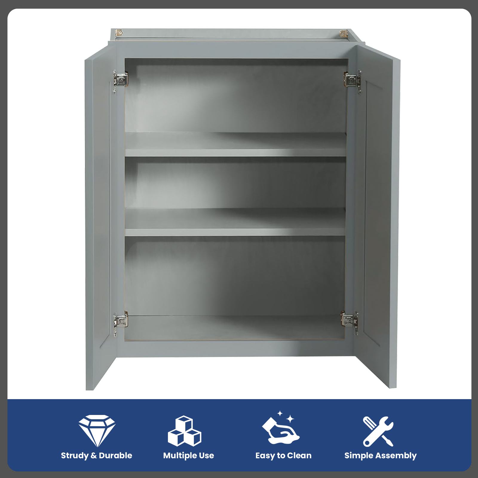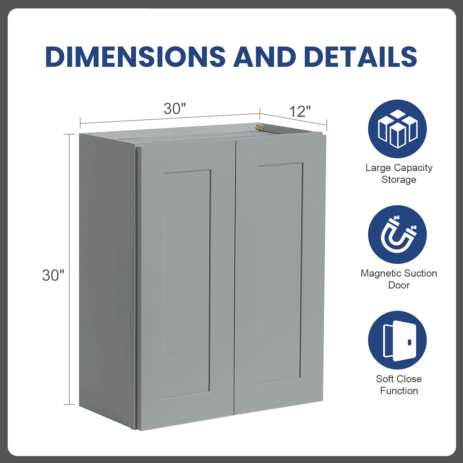 WOWOW WOWOW Assembled Plywood Wall Kitchen Cabinet in Gray with Soft Close