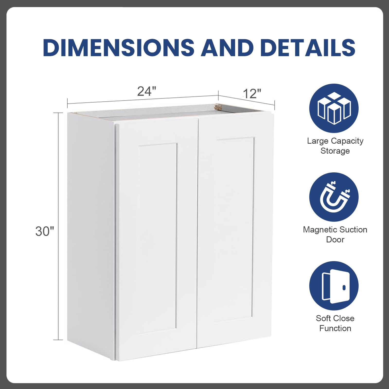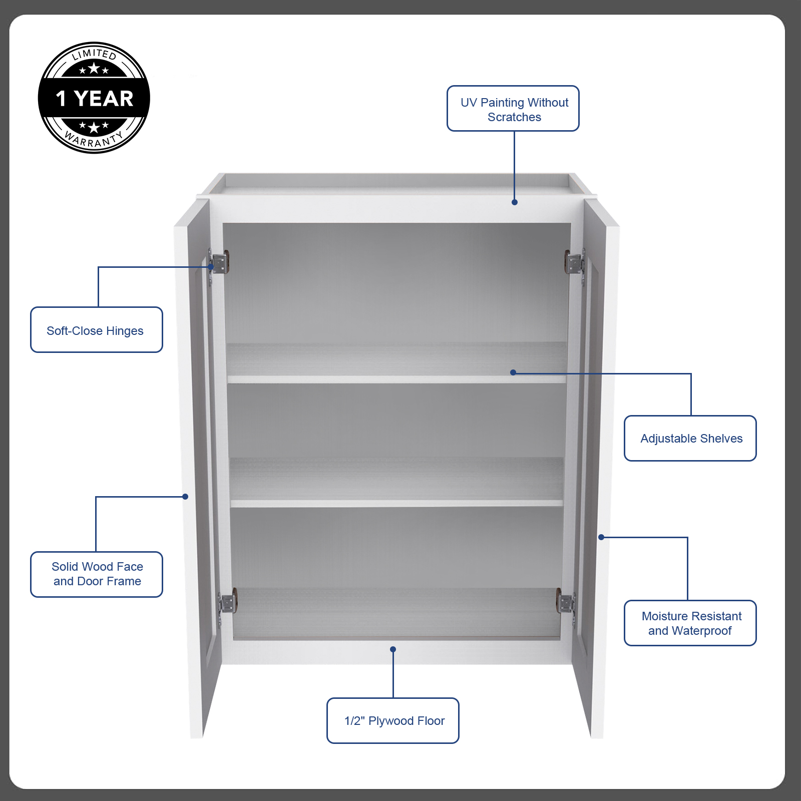 WOWOW Assembled Plywood Wall Kitchen Cabinet in White with Soft Close