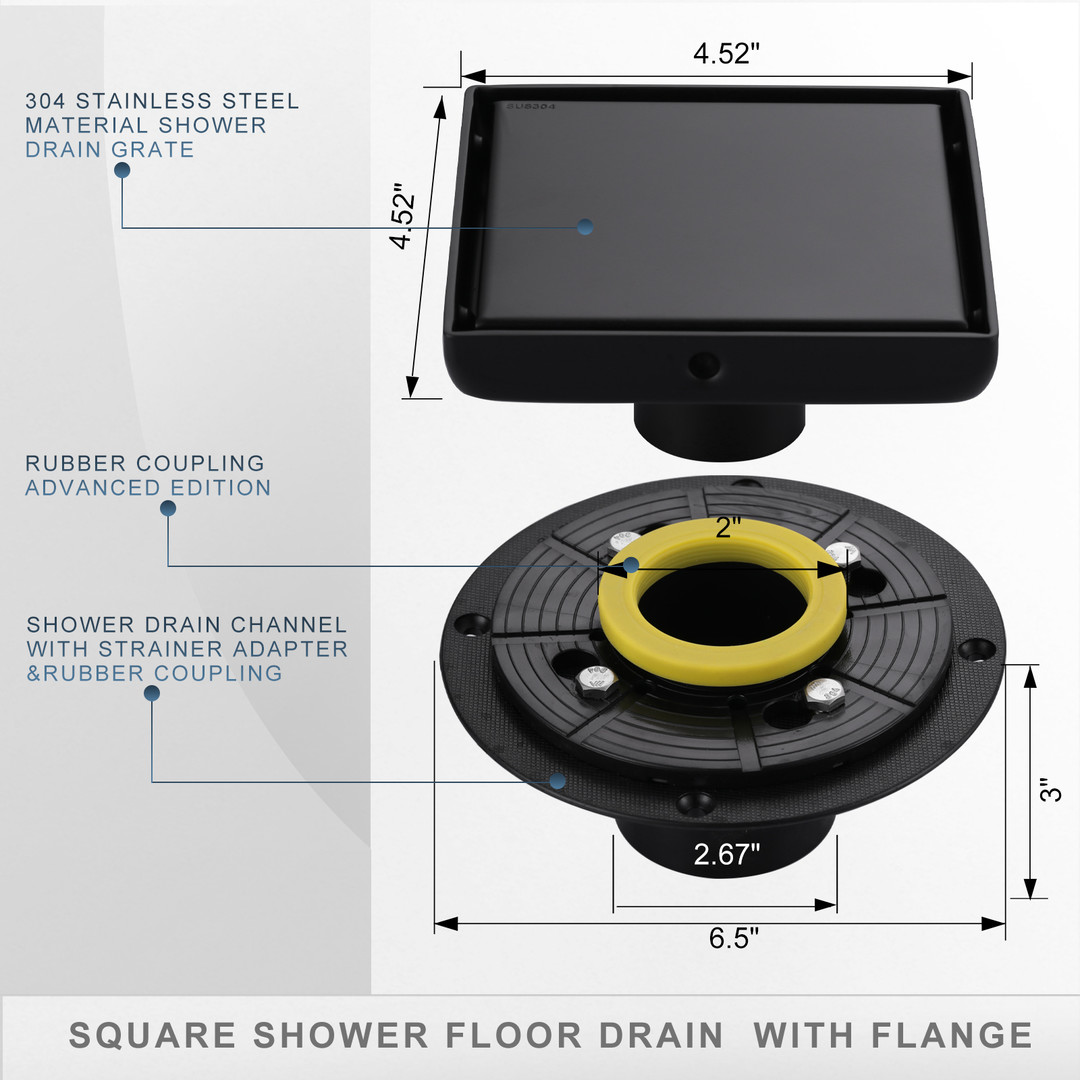 - Pemium Material – This square drain shower is made up of High-Grade 304 Stainless Stee.Brushed finished, protect against corrosion, scratches and rust for long-lasting durability.