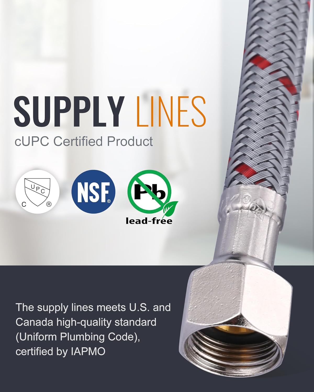 - 【cUPC Certified】 The faucet supply lines are cUPC Certified and safe for water usage.24 inch in length,suitable for commercial or residential sink,bathroom,toilet indoor/outdoor sink faucets,water heater etc.
