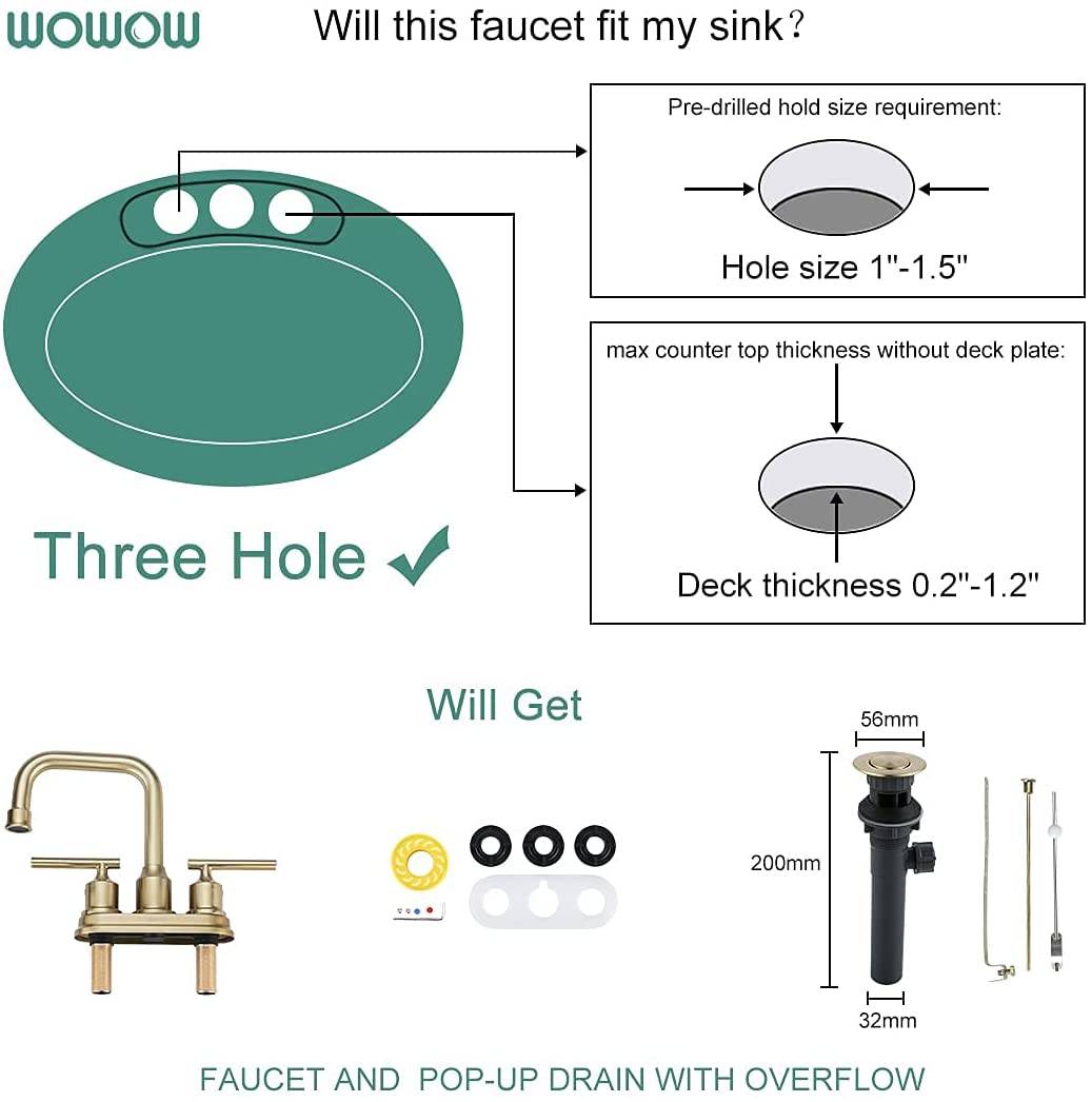 WOWOW Brushed Gold Centerset 4 inch Bathroom Sink Faucet with Drain Assembly