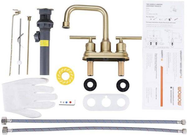 4 reviews for WOWOW Brushed Gold Centerset 4 inch Bathroom Sink Faucet with Drain Assembly