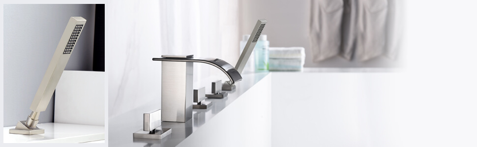- Roman tub faucet with handheld shower, adds convenience while in the tub and can also be used when cleaning and maintaining your tub.