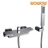 WOWOW Chrome Wall Mount Bathroom Tub Filler Faucet with Handheld Shower