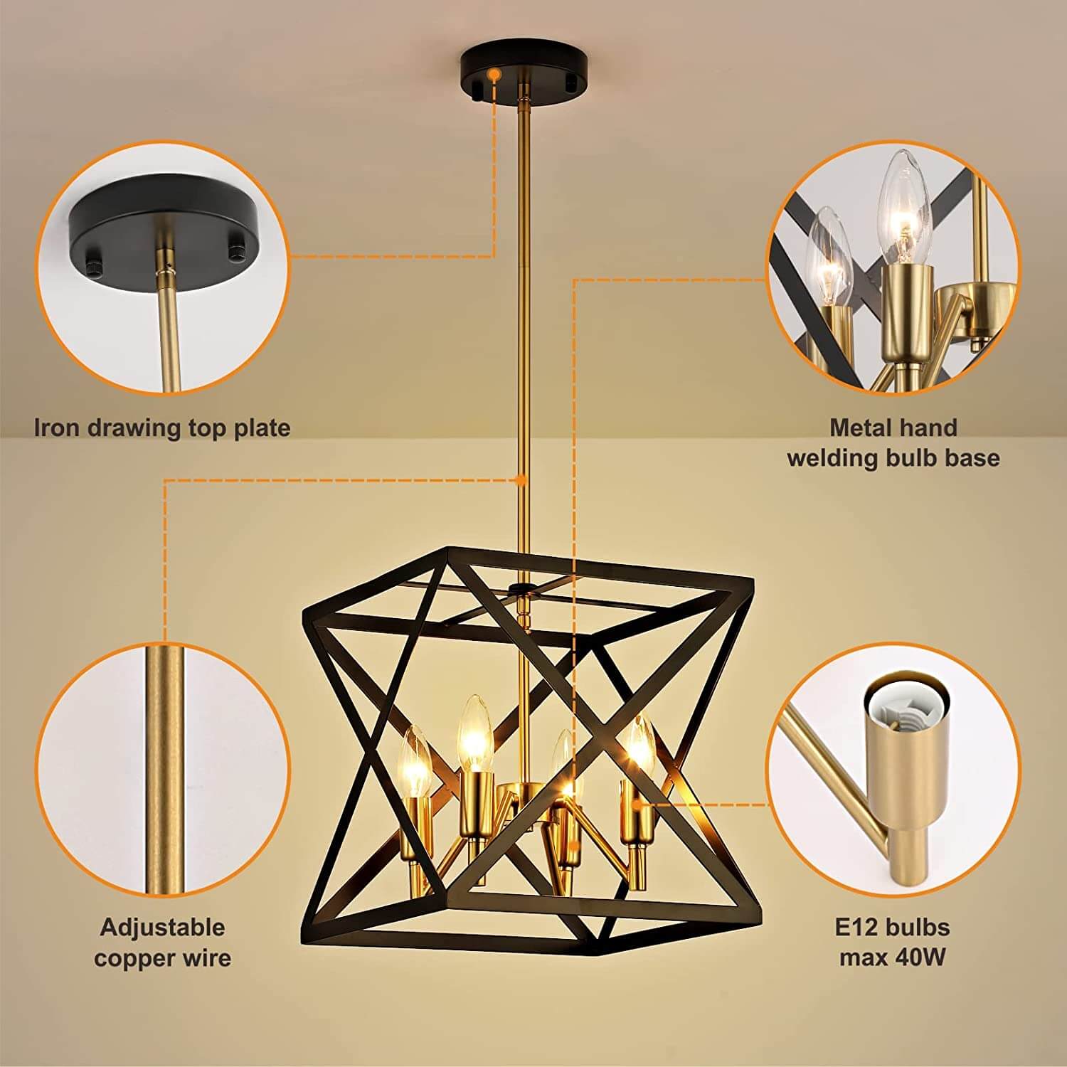 - 【Modern & Industrial Design】This foyer lighting chandelier is composed of wire-frame frame. with elegant black square shadow, geometric beauty and delicate sense. It is the perfect decoration lighting for the kitchen, dining room, living room, entry way, hallway or stairway.
