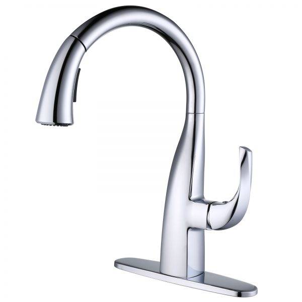 - Chrome Finish Design Patent: the pull-down kitchen sink faucet in shiny chrome finish with exquisite craft; Goose-neck faucet with elegant high arc, modern and beautiful, will add classic&luxury indoor decoration to your house