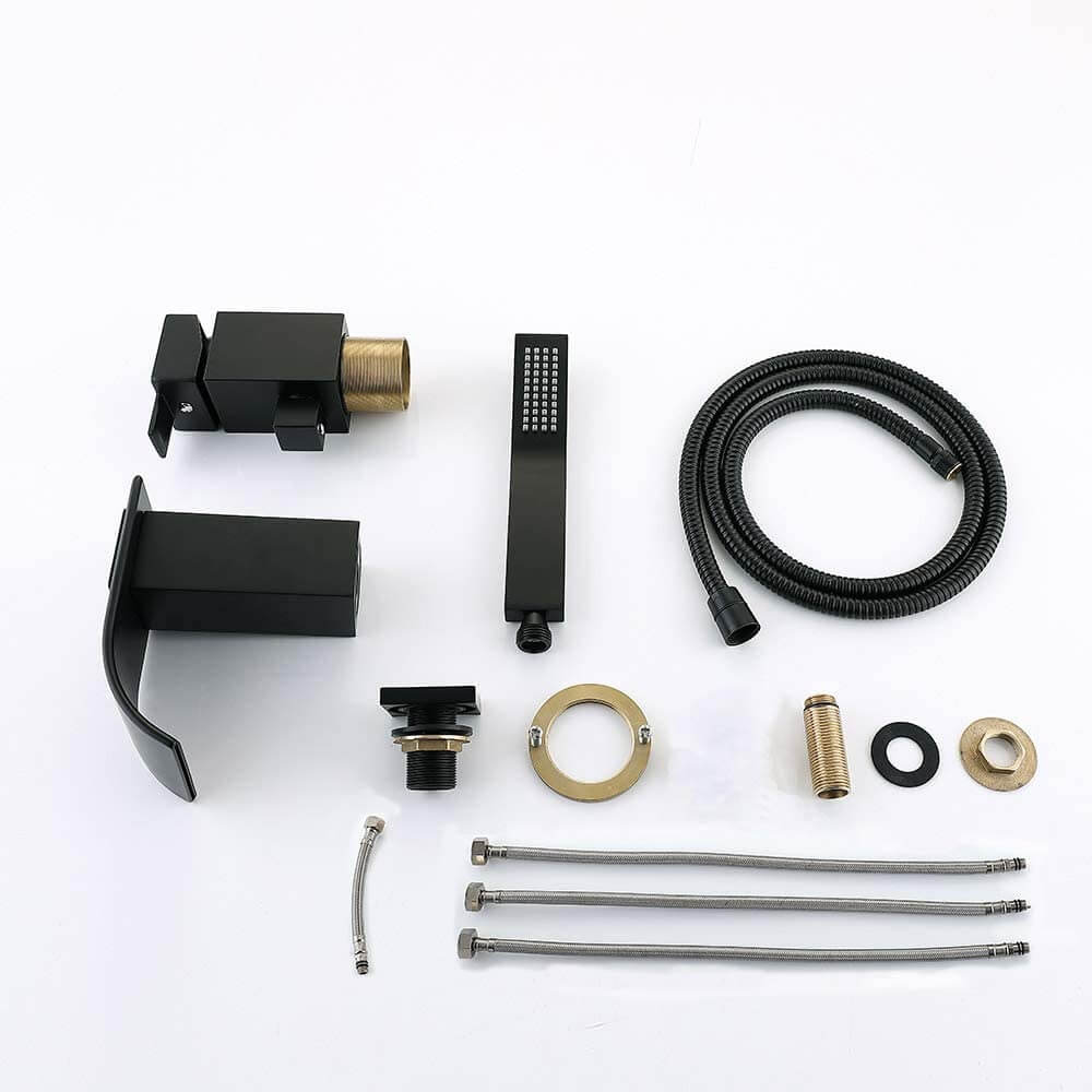 Faucet spout,hand shower,handshower holder,mounting hardware,shower hose,valve & trims,waterlines,installation guide