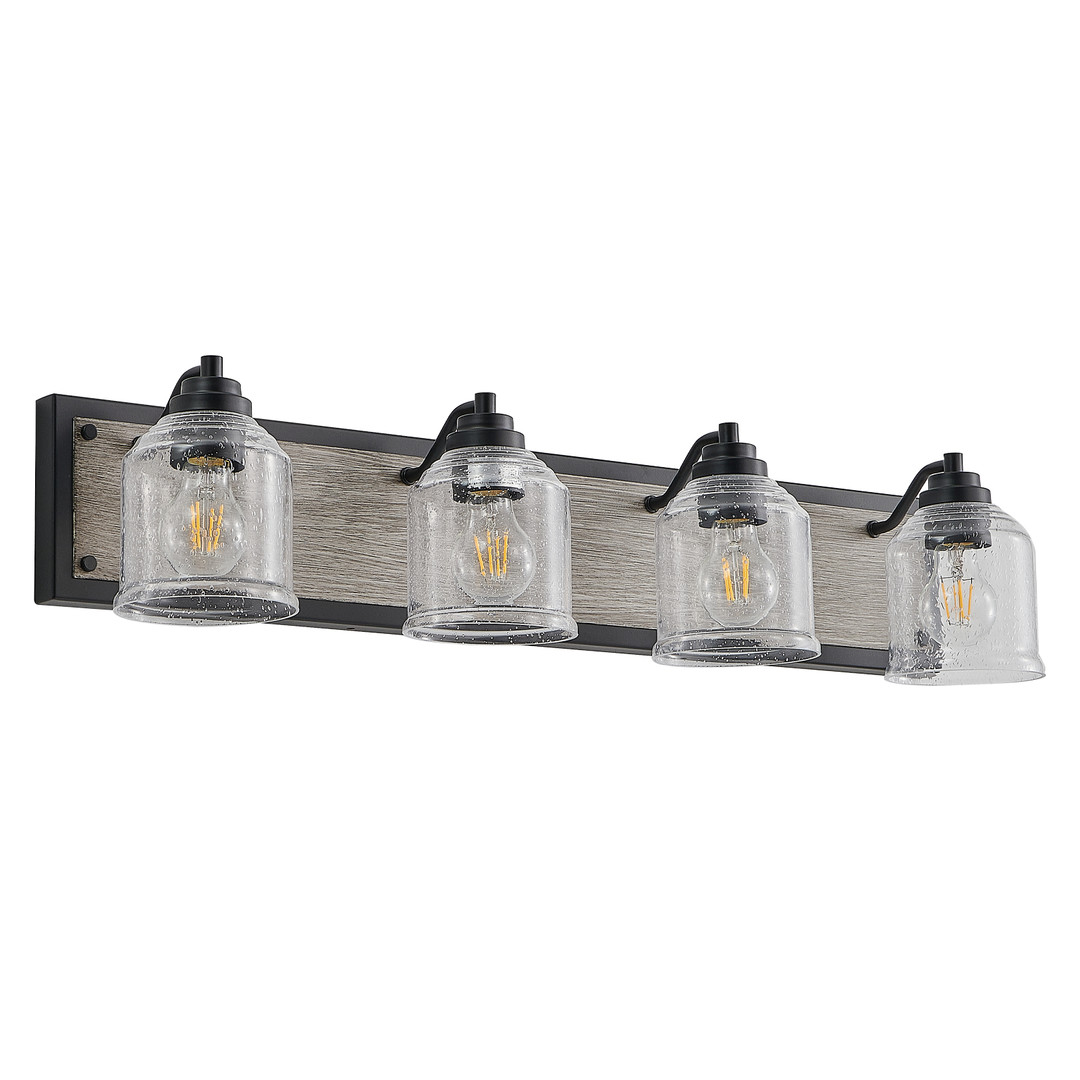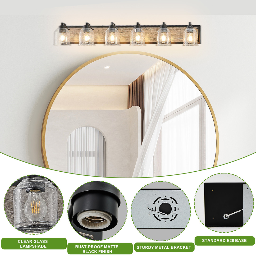 WOWOW Metal Black and Wood Grain Bathroom Vanity Light Wall Sconce with Clear Granular Glass Shade