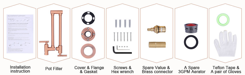 ✅ Standard Thread: Standard brass threads 1/2” NPS to 1/2” NPT, single hole wall mount Pot Filler, with an installation flange for stability. A 5-year warranty and timely customer support are offered. For any after-sales questions, please feel free to contact us.