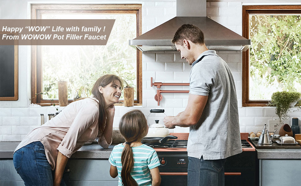 ✅ 360° Rotatable Faucet: WOWOW pot filler faucet with 360° swing arm two handle design is convenient to fill pots on your stove quickly without the walk from sink to stove. It can retract when not in use, save your kitchen space.