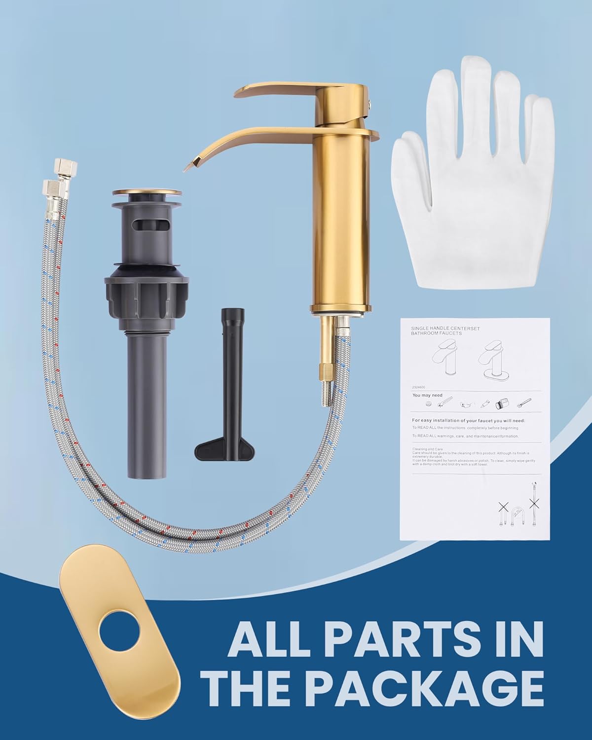 【Convenient Installation】- The single-handle bathroom faucet can be easily adjusted to a powerful waterfall. Pop up drain with overflow,Super easy to install and clean this single hole bathroom faucet. The short design makes it self-installable using hardware.