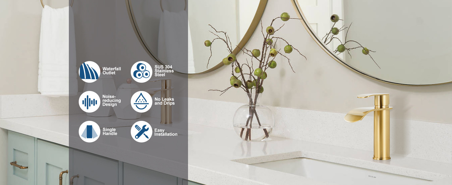 【Waterfall Design】The bathroom faucets provide a beautiful, steady laminar waterfall stream that can make your bathroom adds a touch of transitional elegance. Note: In order to reduce noise, we improved the water outlet. Before installing the faucet, please open the hot and cold angle valve to flush for 30 minutes.