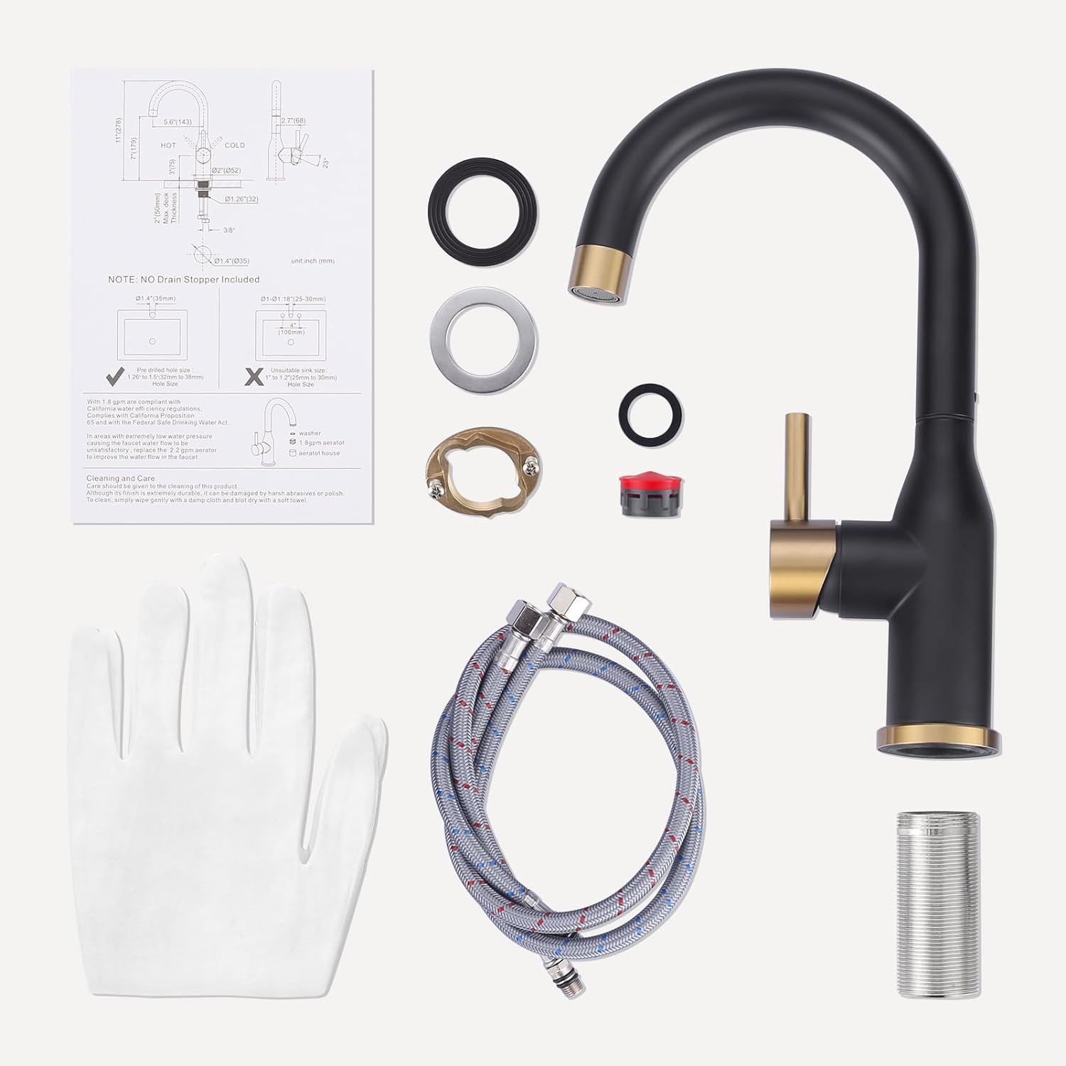 WOWOW Single Hole Single Handle Bar Sink Faucet Black and Gold RV Kitchen Faucet