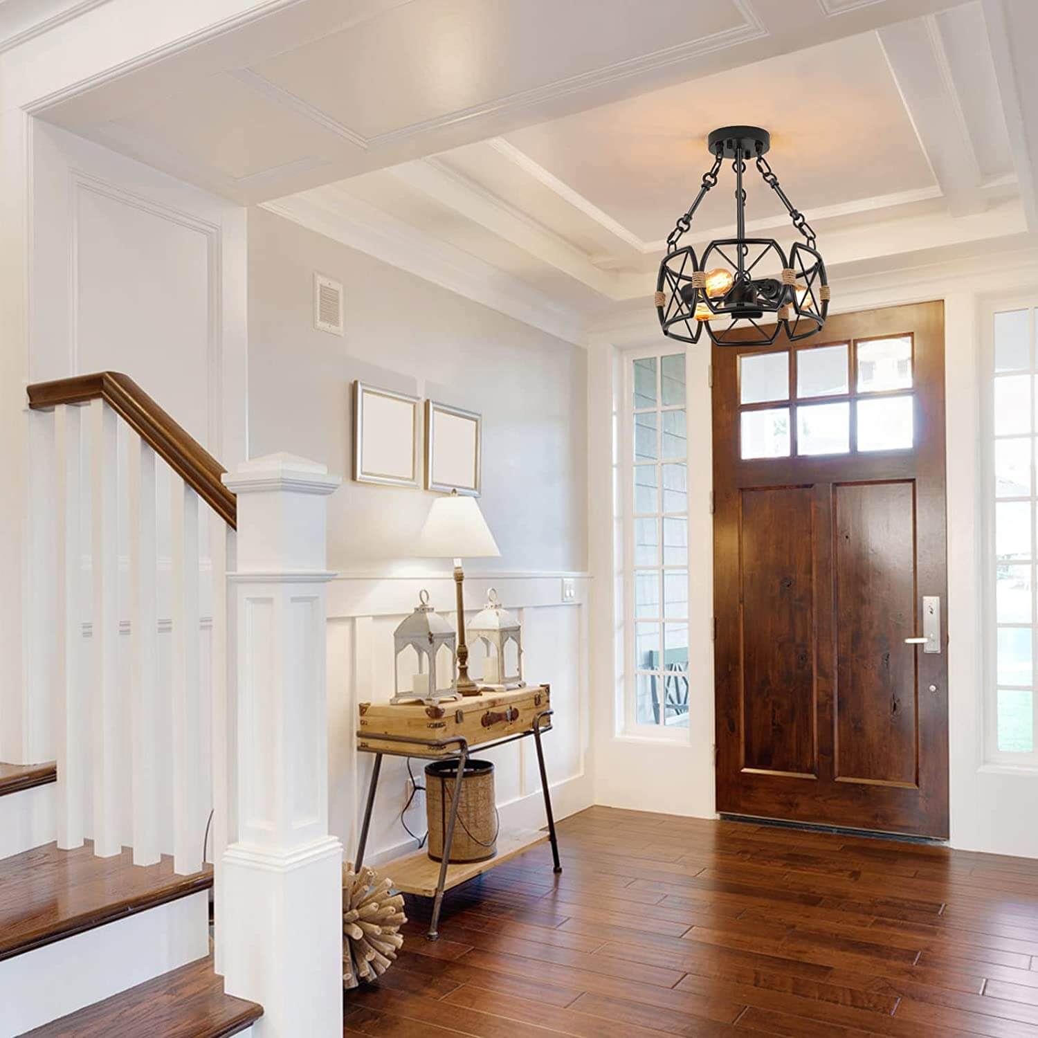 WOWOW Vintage Industrial Black Semi Flush Mount Ceiling Hanging Light