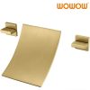 WOWOW Wall Mount 2 Handle Waterfall Brushed Gold Tub Filler Faucet Description