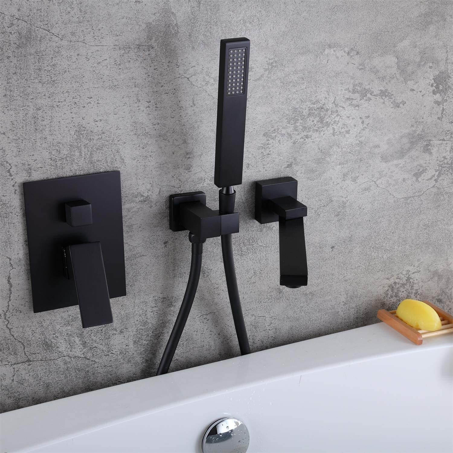 WOWOW Wall Mount Bathtub Faucet with Hand Shower Matte Black
