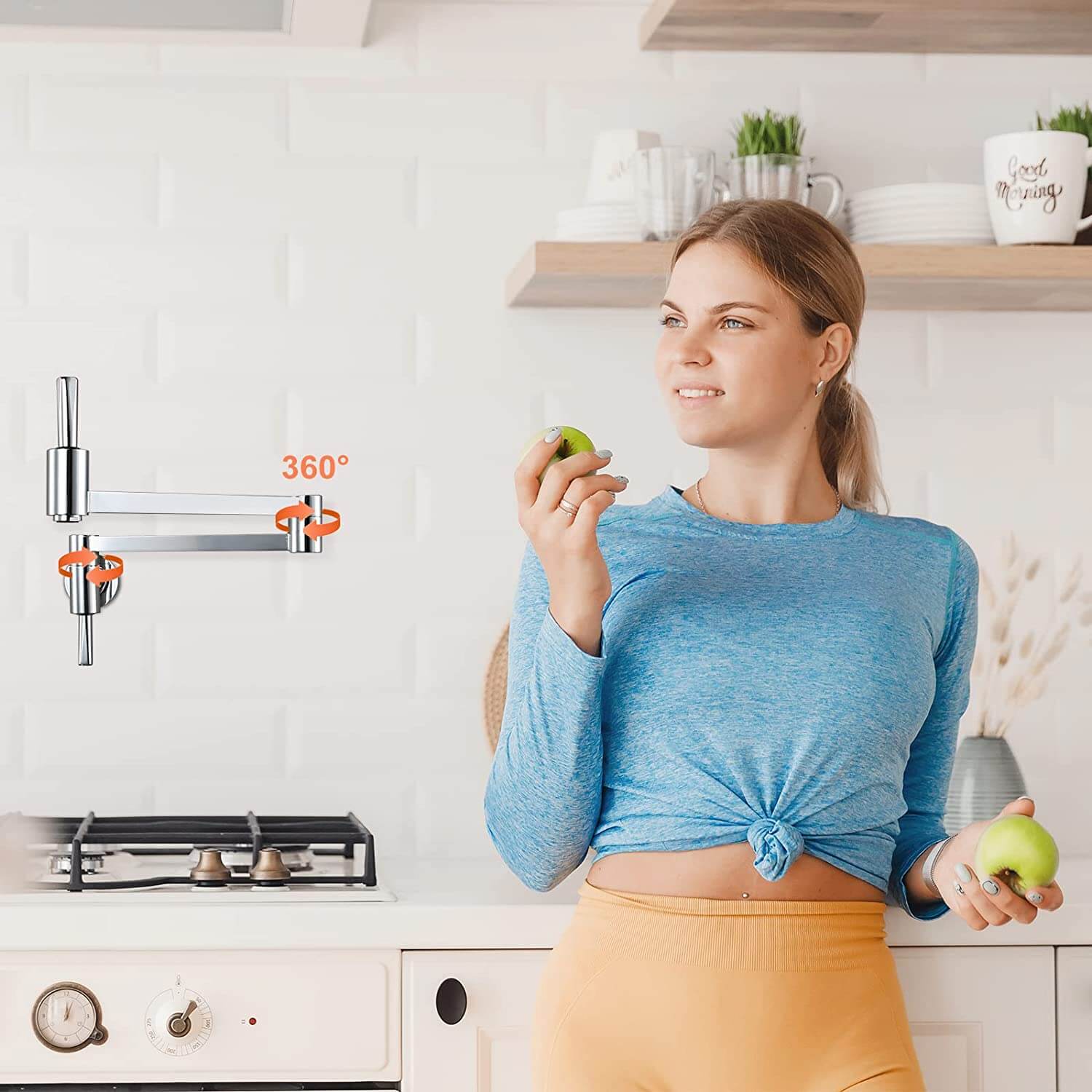 WOWOW Wall Mount Pot Filler Chrome Commercial Folding Kitchen Faucet
