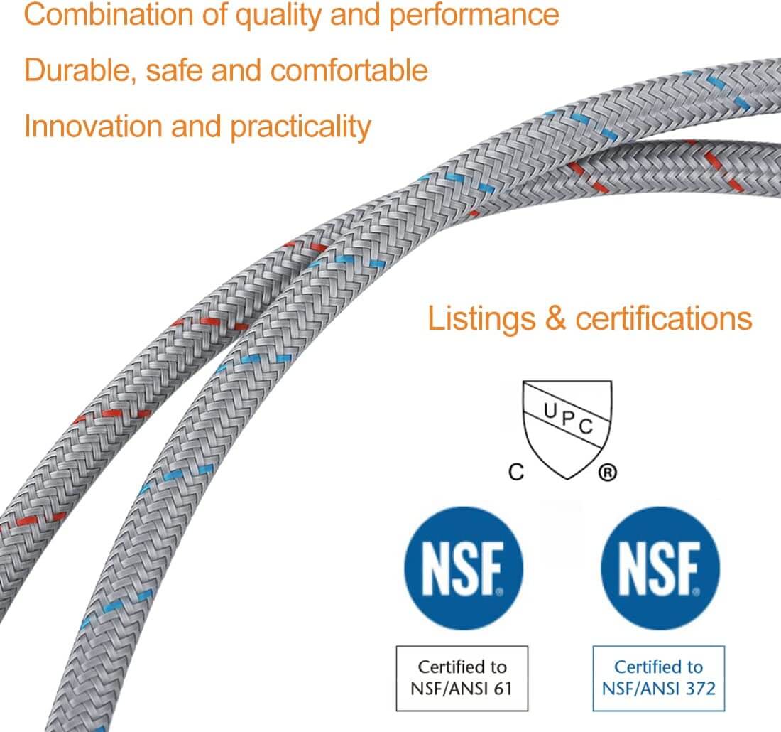 - [Widely Use] The 30 inch water supply lines are lead-free and safe for water usage for commercial or residential kitchen sink, bathroom, indoor/outdoor sink faucets.
