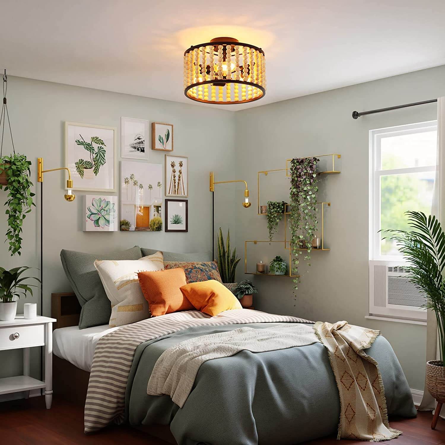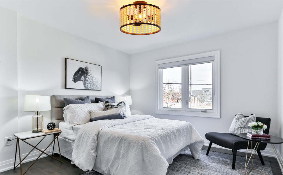 This wooden bead flush mount ceiling light can create a warm atmosphere in your home and bring you an elegant and beautiful feeling. It can be installed in the entryway, bedroom, living room, corridor, stairway, etc.