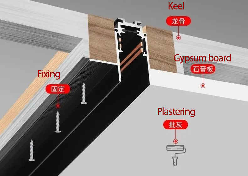 When the ceiling has been completed, still want to install magnetic lights. You can cut a slot in the top surface and install the track. Then the track will be painted, thus enabling the use of magnetic suction lights. This way brings more options for customers who have already done the top surface treatment but still want to use magnetic lights.